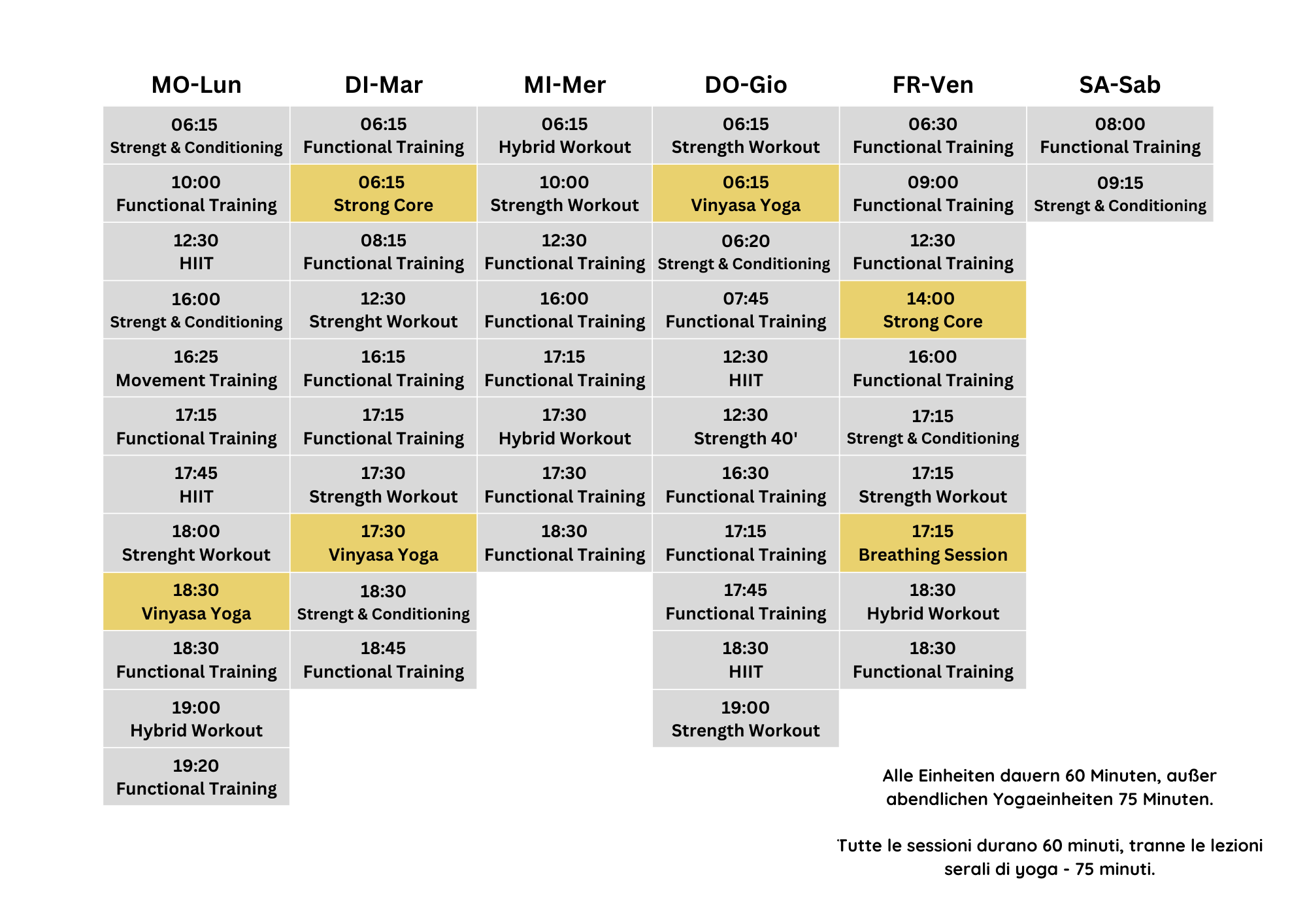 Target: persone sportive con una buona base, che vogliono di più – fisicamente, mentalmente e in termini di performance. Ideale per prepararsi a HYROX®, Spartan Race®, alla beyond Challenge o semplicemente per superare se stessi.